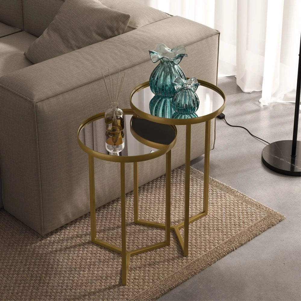 Conjunto de Mesa Lateral Aço Com Espelho Estilo Industrial – Sofisticação e Funcionalidade para o Seu Espaço ✨