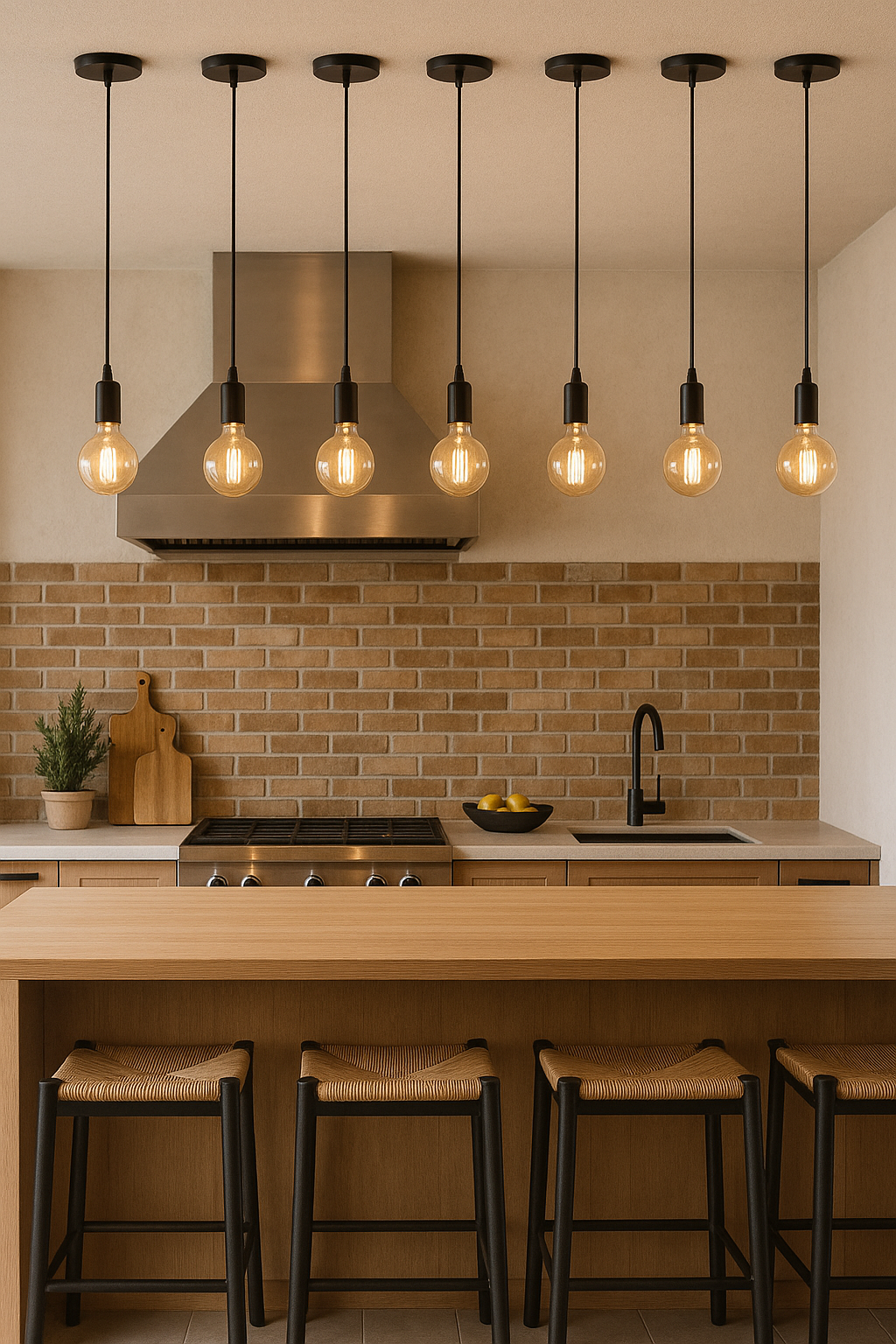 Você pode usar os pendentes de forma criativa e personalizada, variando a altura, a distância entre os fios e os tipos de lâmpadas, criando uma composição que é ao mesmo tempo moderna e aconchegante. Imagine vários pendentes em diferentes alturas, com lâmpadas Edison emitindo uma luz suave e intimista, transformando seu espaço em um verdadeiro refúgio de boas vibrações.