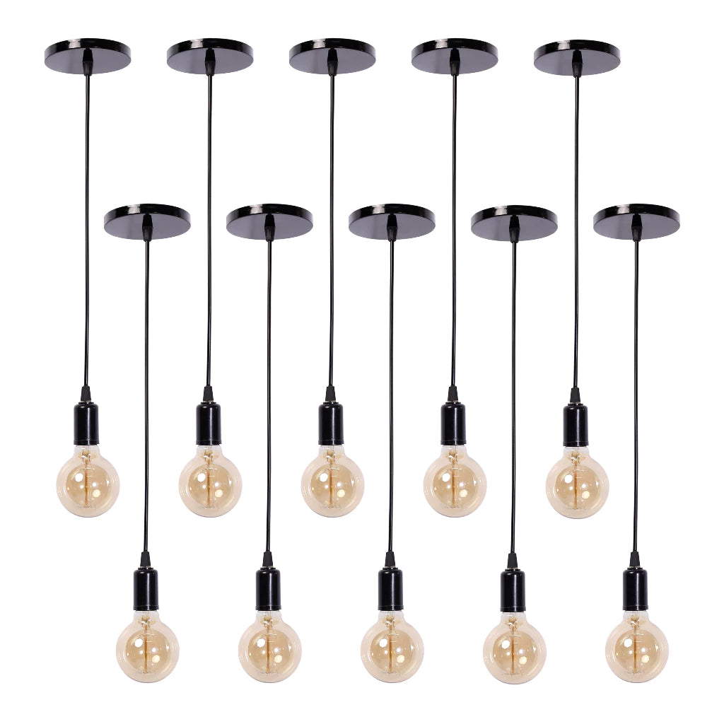 Kit de 10 Pendentes Fio Cabo Vintage Industrial Preto