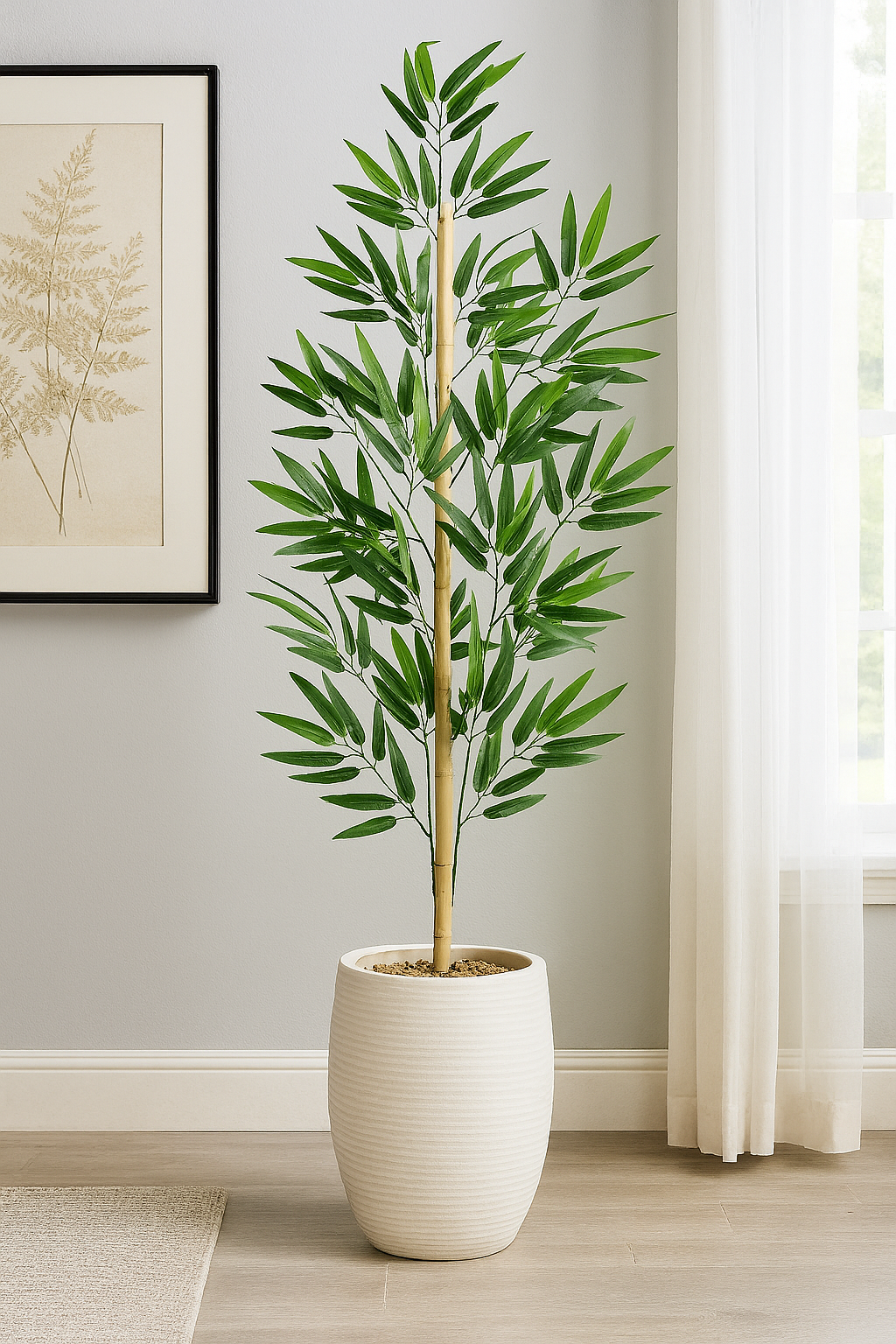 • 1 planta artificial de bambu (com folhas de silicone e haste natural tratada).