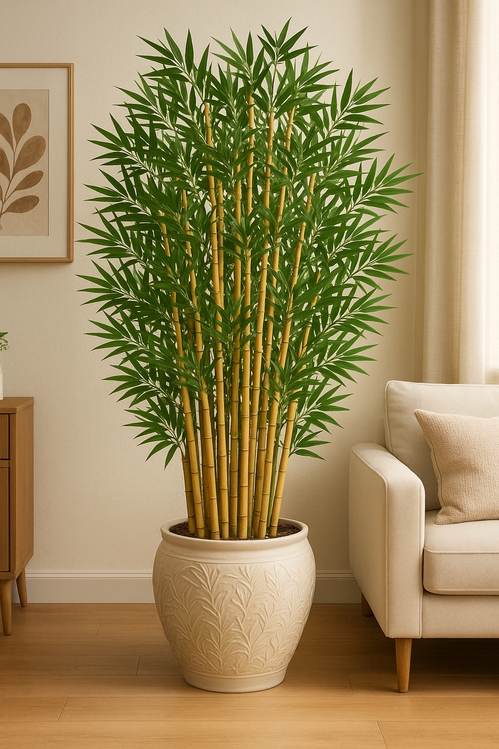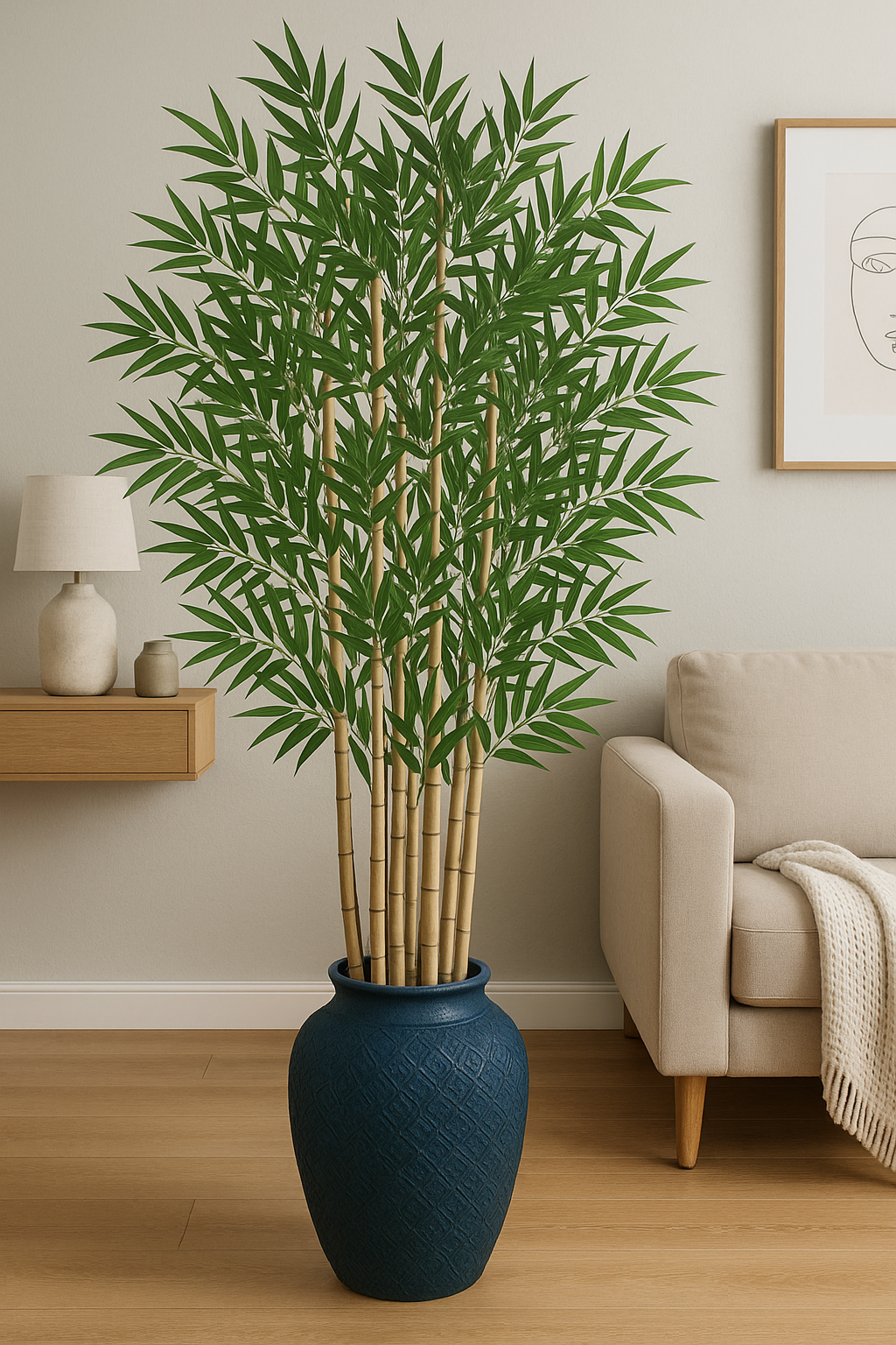 Transforme qualquer ambiente com a beleza atemporal do Bambu Artificial com folhas de silicone . Perfeito para jardins, canteiros, festas, ambientes externos, escritórios, halls de entrada, restaurantes e cafés, ele traz o frescor e a leveza da natureza com a praticidade que a sua rotina precisa.