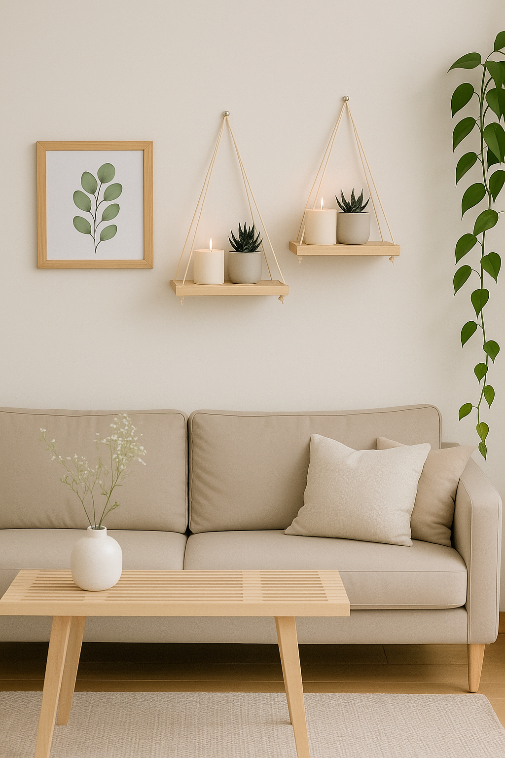 Transforme seu ambiente com a elegância simples da nossa Prateleira Suspensa de Madeira Pinus com Corda de Algodão Cru. Com um design artesanal que une rusticidade e sofisticação, ela é perfeita para dar charme à sua sala, quarto, escritório, varanda ou até ao banheiro.